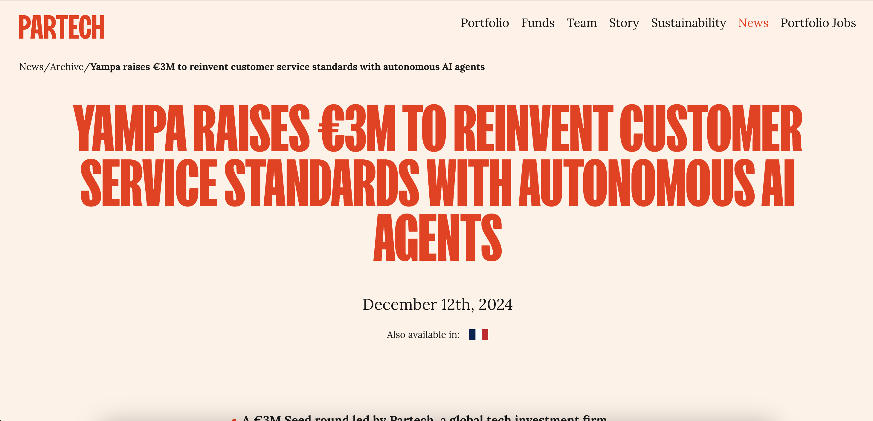 With €3M from Partech, Yampa scales its AI-powered agents that handle end-to-end customer service, freeing teams to focus on what truly matters: building trust and loyalty through human expertise.